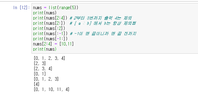 리스트의 원소 a부터 b-1 까지 접근하게 해주는 문법 [a:b]