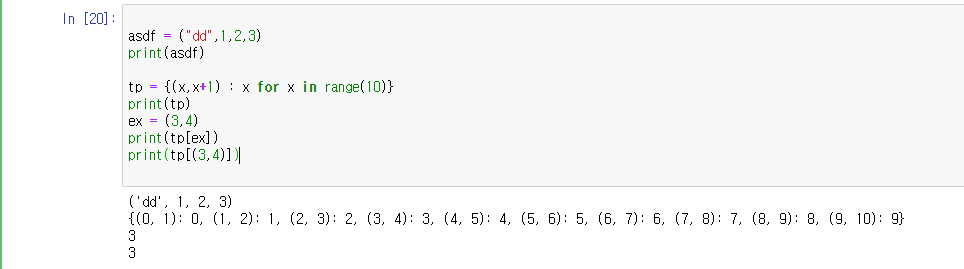 일단 변하지 않는다는 것부터 list와 다르고, dictionary의 key값이나 set의 elements로 쓰일 수 있다.