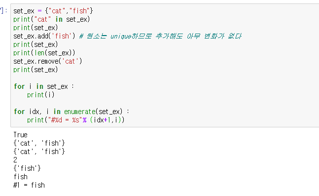 list 처럼 [] 대괄호가 아닌 {} 중괄호를 사용한다!!