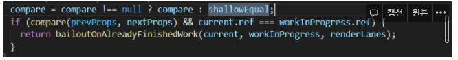- compare은 별다른걸 주지 않으면 null이 들어가 있는데, 나중에 보면 알지만 null은 기본 shallowEqual로 변합니다