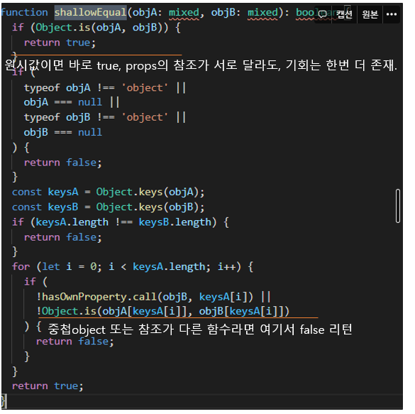 - shallowEqual은 areHookEquals + object 비교가 존재합니다.
