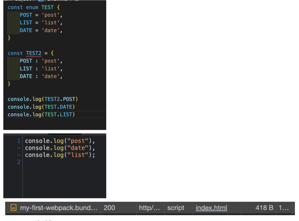 - enum처럼 사용할 수 있으면서, tree-shake도 잘 되는것을 확인할 수 있습니다.