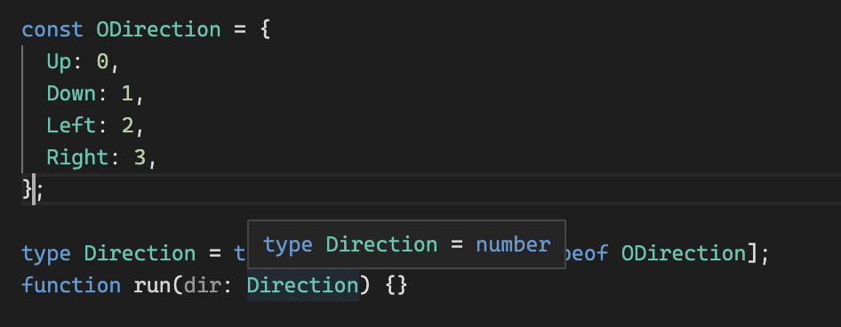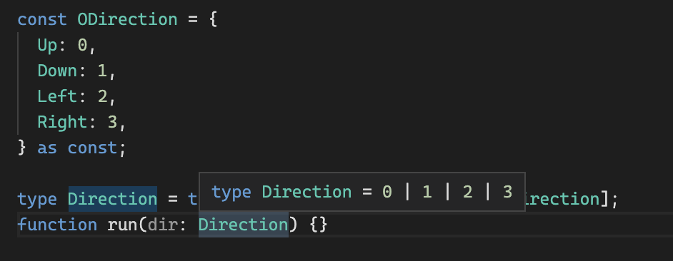 const ODirection = { Up: 0, Down: 1, Left: 2, Right: 3, } as const;