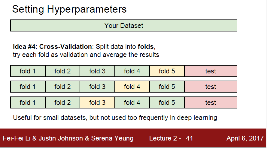 training data의 사이즈가 작을경우에는 '교차검증' 이라고 불리는 좀 더 정교한 튜닝 기술을 사용할 수 있다.