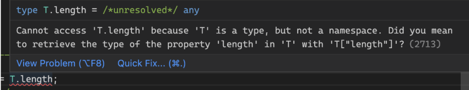 - T가 Array라고 가정하면 T는 Array interface이다. 그리고 length는 interface에 정의된 property이다.