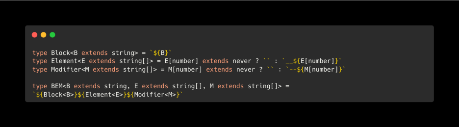 - '${Block<B>}${Element<E>}blue' | '${Block<B>}${Element<E>}red'