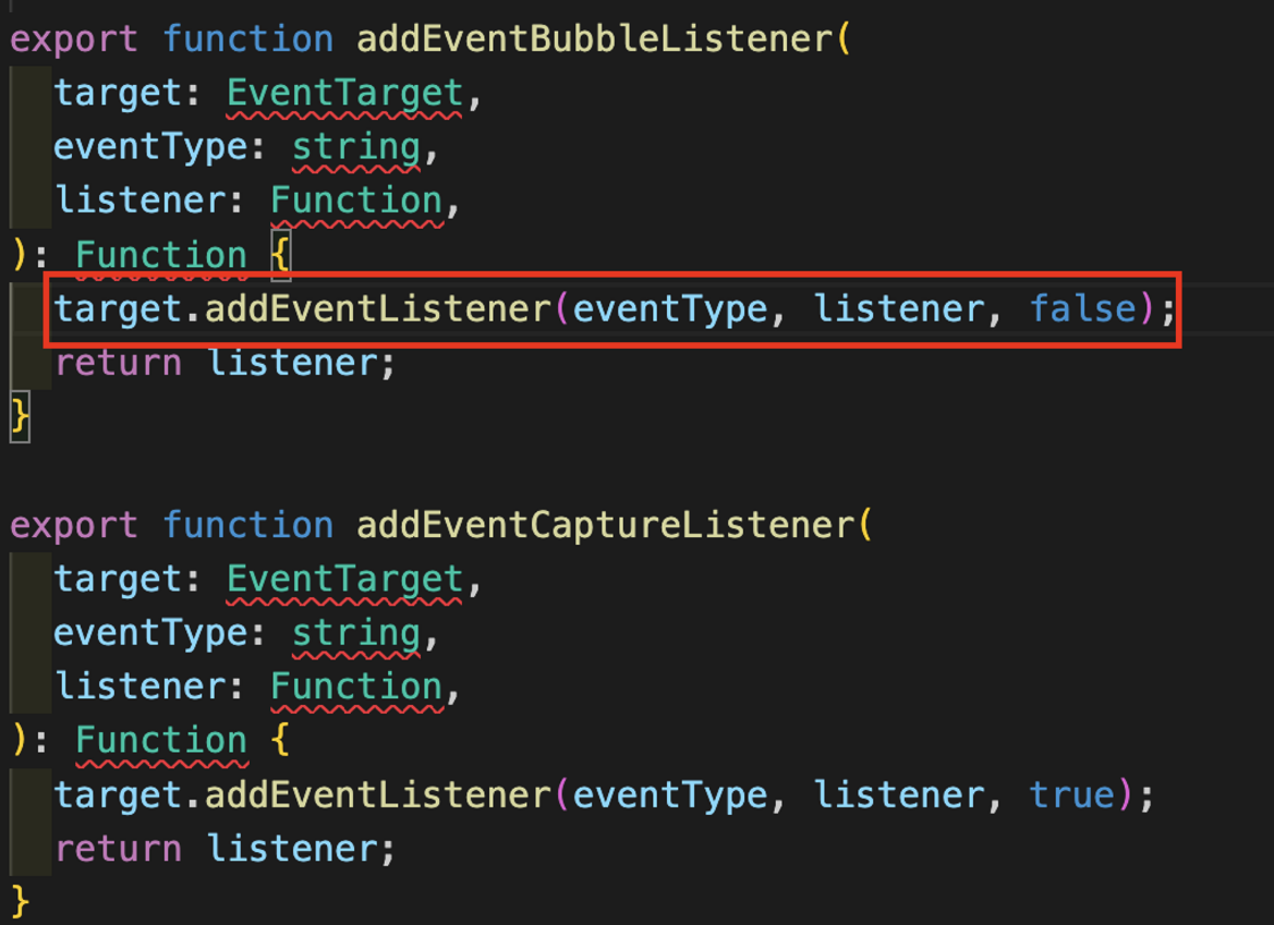 - 이벤트의 phase에 따라서 등록하는 함수를 나눠놨지만 예시로 addEventBubbleListener 를 보겠습니다