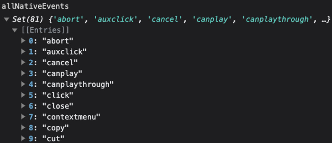 - allNativeEvents는 위의 사진에서 봤던 native event들을 가지고있던 Set 입니다.