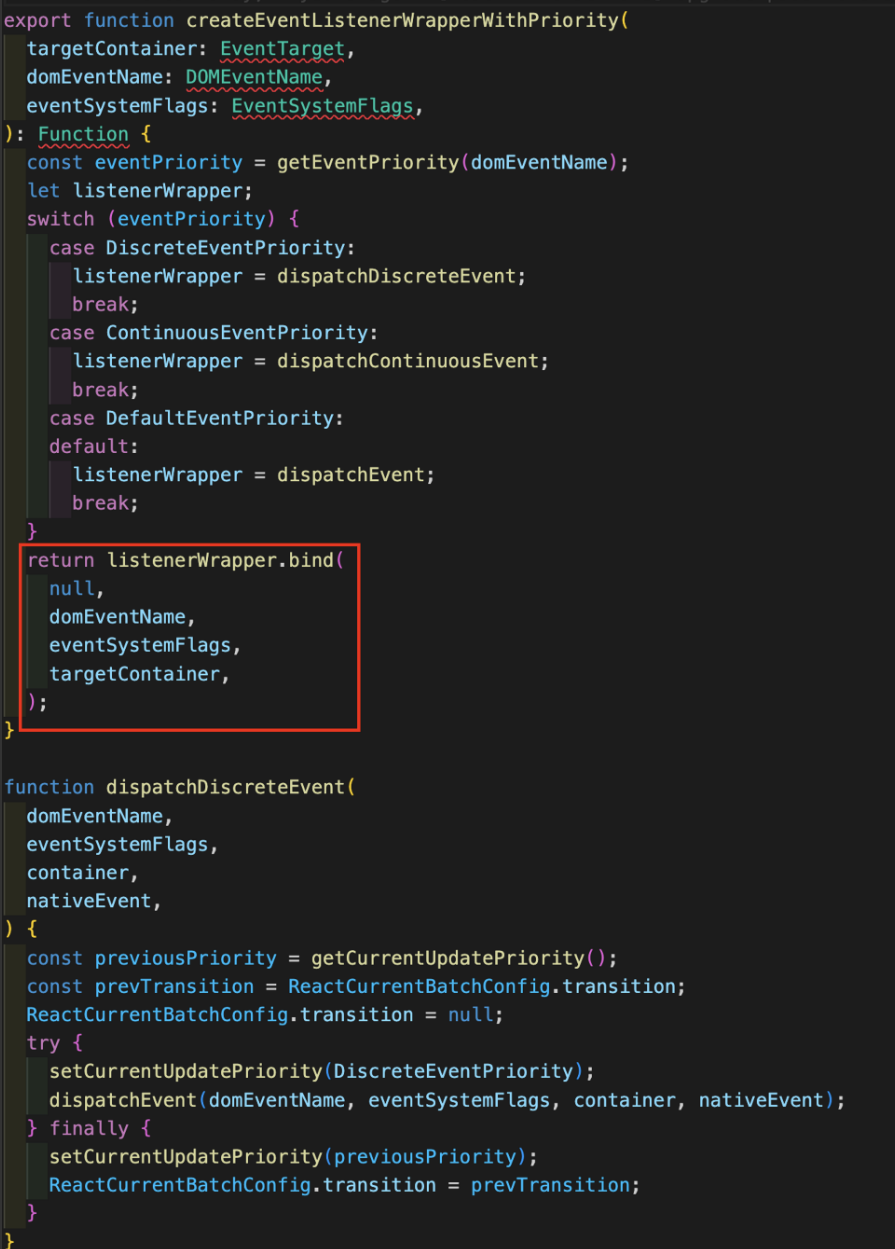 - 이 함수에서 이벤트를 처리할때 사용할 함수를 bind 해서 리턴해주는것을 확인할 수 있습니다.