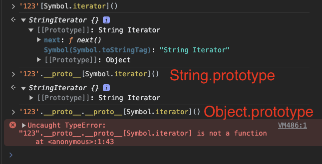 "123"의 wrapper object인 String.prototype에 [Symbol.iterator]가 존재합니다. 다음의 예시로 알 수 있습니다.