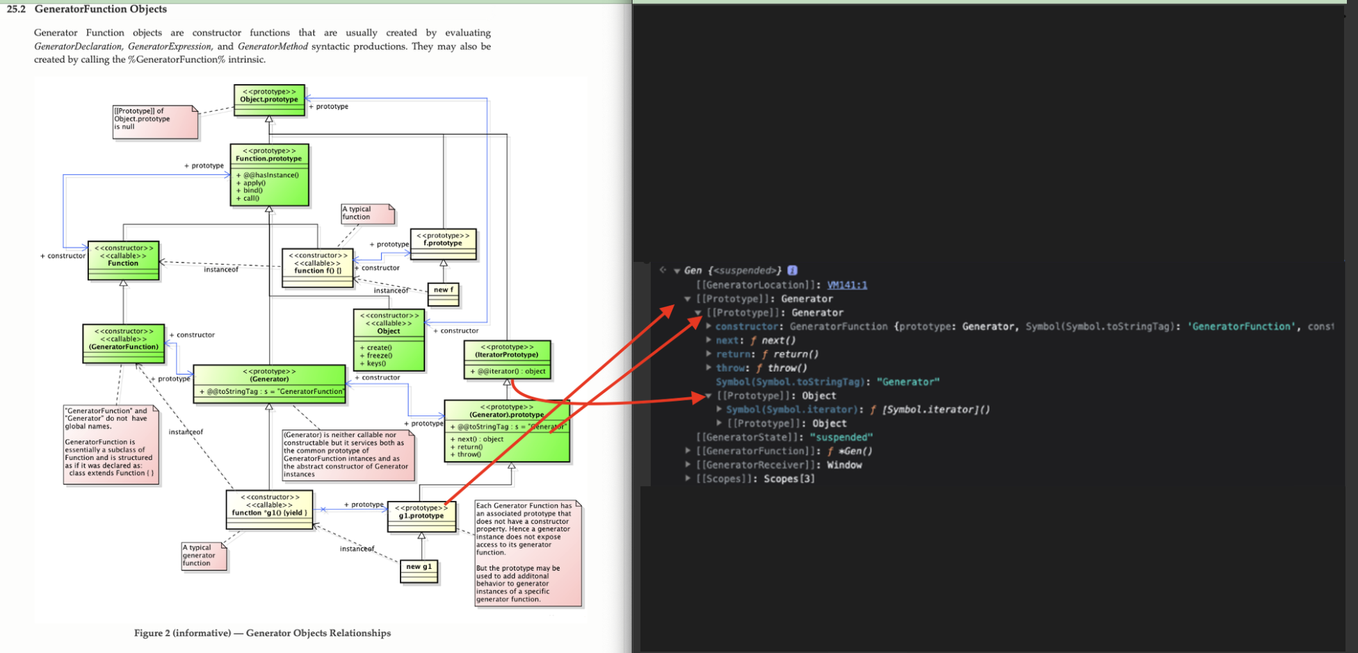- prototype chain을 이용해서 next, return 같은 함수들을 호출한다.