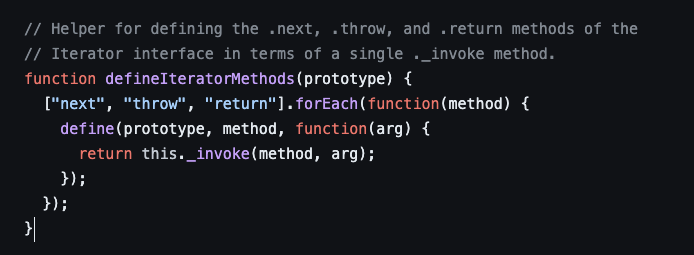 // The ._invoke method unifies the implementations of the .next,