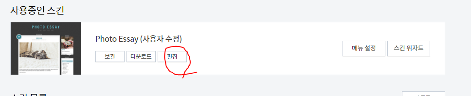 STEP 2. 사용중인 스킨으로 가서 편집 누르기