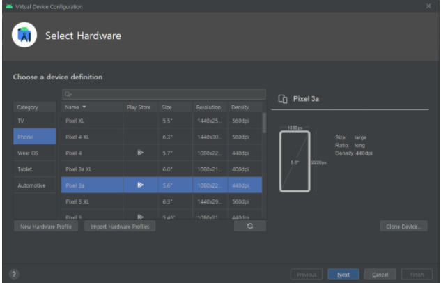 제가 쓸 virtual device를 설정해줍시다. 갤럭시7edge로도 잘 쓰고 있는데