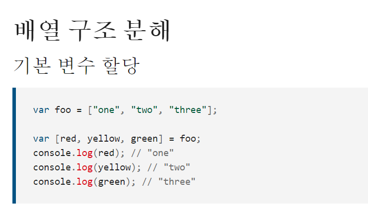 저번에 포스팅을 하면서, 구조분해 할당에 대해서 찾아봤습니다. 여기가 한국이라 그런지, 한국어로 먼저 나와서 한국어로 읽었습니다.