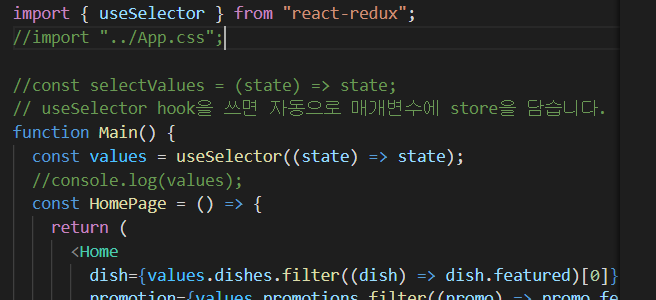 이런식으로 useSelector hook을 이용하면 store에 있는 값을 쓸 수 있습니다.