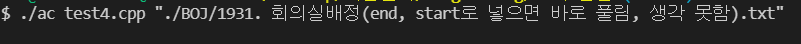 3번째 argument에는 띄어쓰기가 있으므로 ""로 감싸주어야 한다.